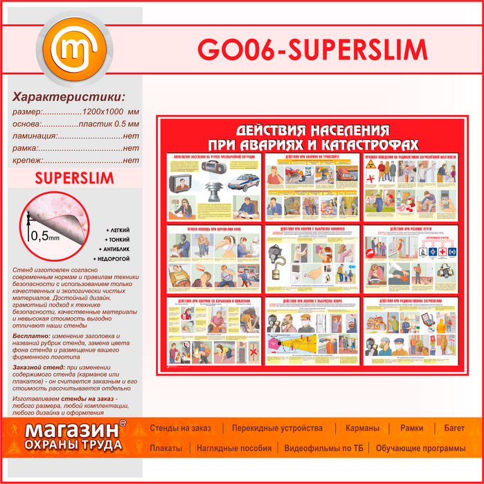 Стенд «Действия населения при авариях и катастрофах» (GO-06-SUPERSLIM) в Пушкино купить