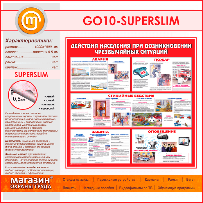 Стенд «Действия населения при возникновении чрезвычайных ситуаций» (GO-10-SUPERSLIM) в Пушкино купить