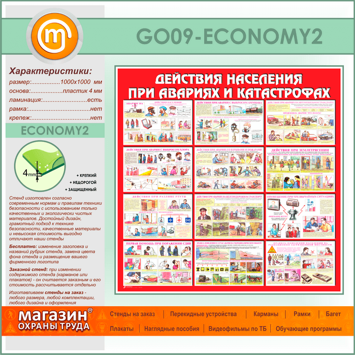 Стенд «Действия населения при авариях и катастрофах» (GO-09-ECONOMY2) в Пушкино купить