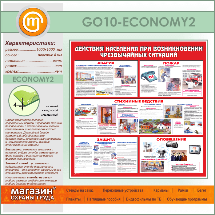 Стенд «Действия населения при возникновении чрезвычайных ситуаций» (GO-10-ECONOMY2) в Пушкино купить