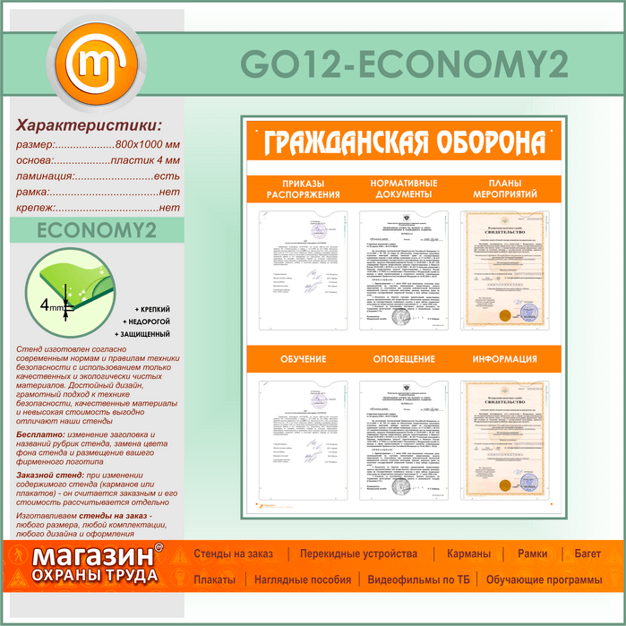 Стенд «Гражданская оборона» с 6 плоскими карманами (GO-12-ECONOMY2) в Пушкино купить