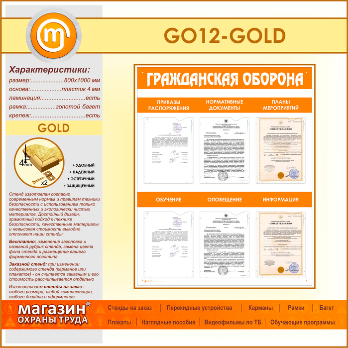 Стенд «Гражданская оборона» с 6 плоскими карманами (GO-12-GOLD) в Пушкино купить