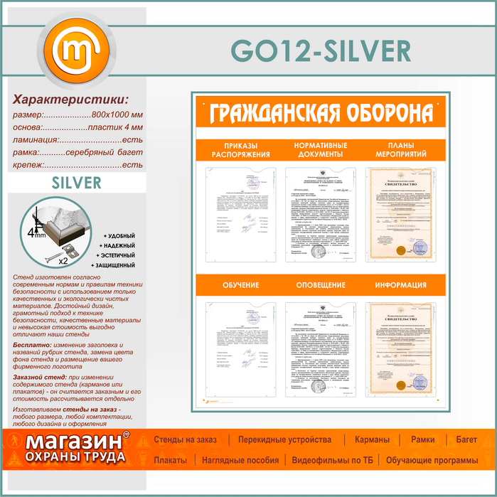 Стенд «Гражданская оборона» с 6 плоскими карманами (GO-12-SILVER) в Пушкино купить