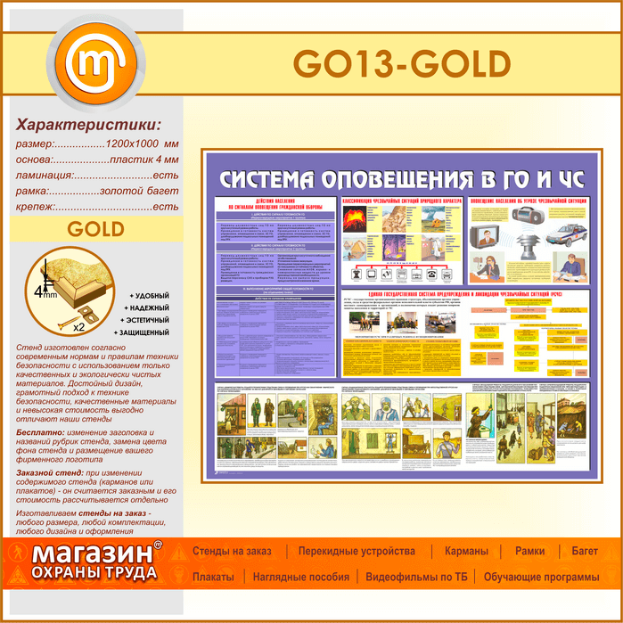 Стенд «Система оповещения в ГО и ЧС» (GO-13-GOLD) в Пушкино купить