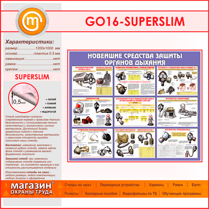 Стенд «Новейшие средства защиты органов дыхания» (GO-16-SUPERSLIM) в Пушкино купить