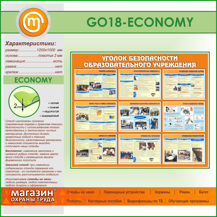 Стенд «Уголок безопасности образовательного учреждения» (GO-18-ECONOMY) в Пушкино купить