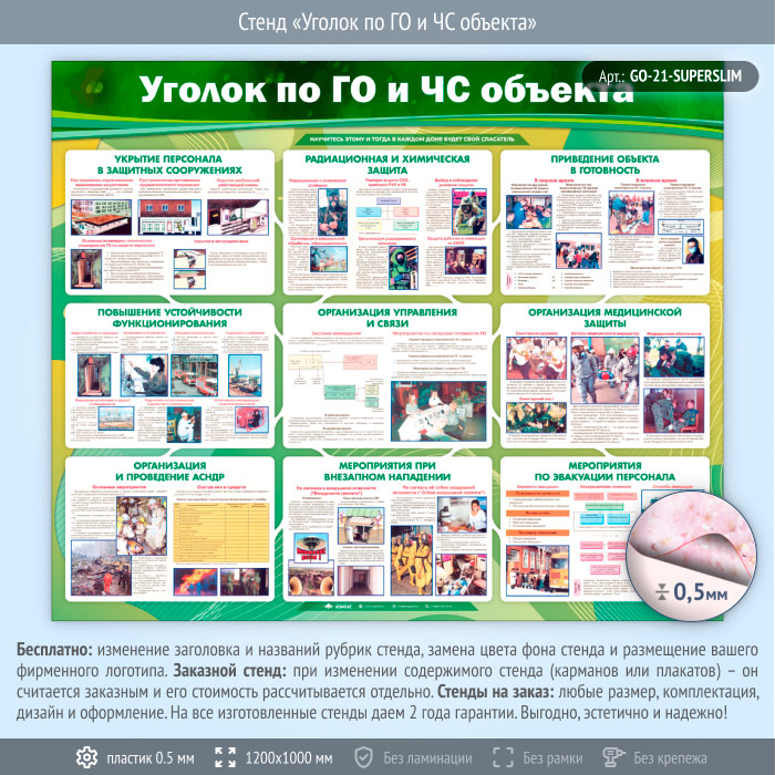 Стенд «Уголок по ГО и ЧС объекта» (GO-21-SUPERSLIM) в Пушкино купить