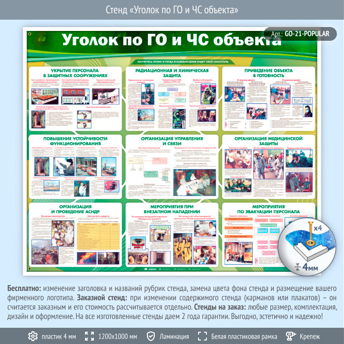 Стенд «Уголок по ГО и ЧС объекта» (GO-21-POPULAR) в Пушкино купить