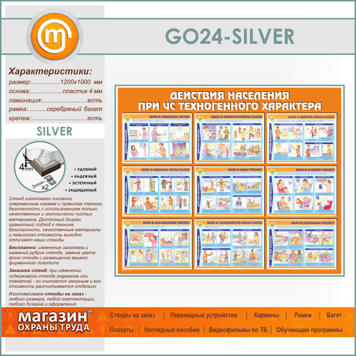 Стенд «Действия населения при ЧС техногенного характера» (GO-24-SILVER) в Пушкино купить
