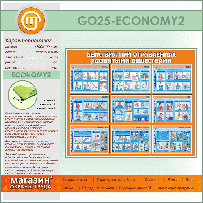 Стенд «Действия при отравлении ядовитыми веществами» (GO-25-ECONOMY2) в Пушкино купить