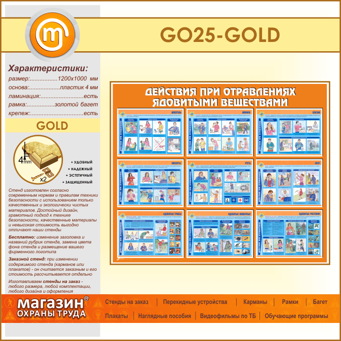 Стенд «Действия при отравлении ядовитыми веществами» (GO-25-GOLD) в Пушкино купить