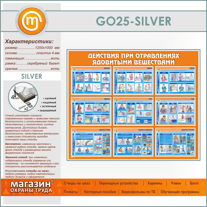 Стенд «Действия при отравлении ядовитыми веществами» (GO-25-SILVER) в Пушкино купить