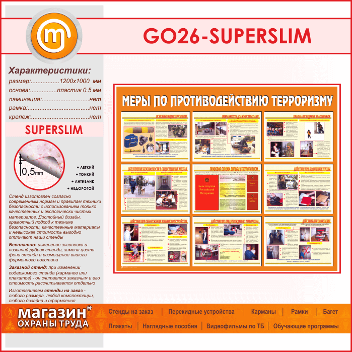 Стенд «Меры по противодействию терроризму» (GO-26-SUPERSLIM) в Пушкино купить