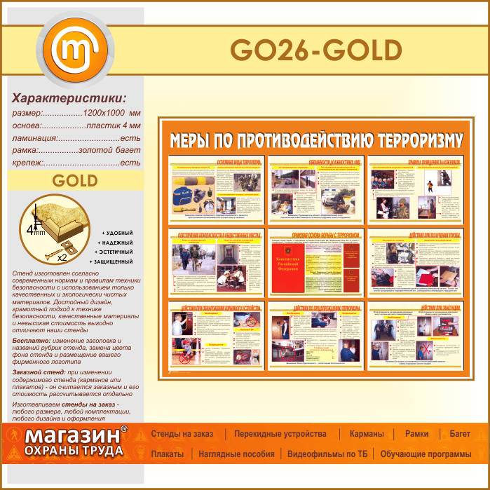 Стенд «Меры по противодействию терроризму» (GO-26-GOLD) в Пушкино купить