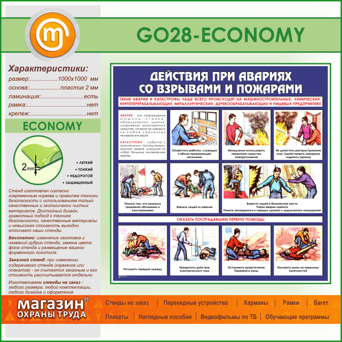 Стенд «Действия при авариях со взрывами и пожарами» (GO-28-ECONOMY) в Пушкино купить