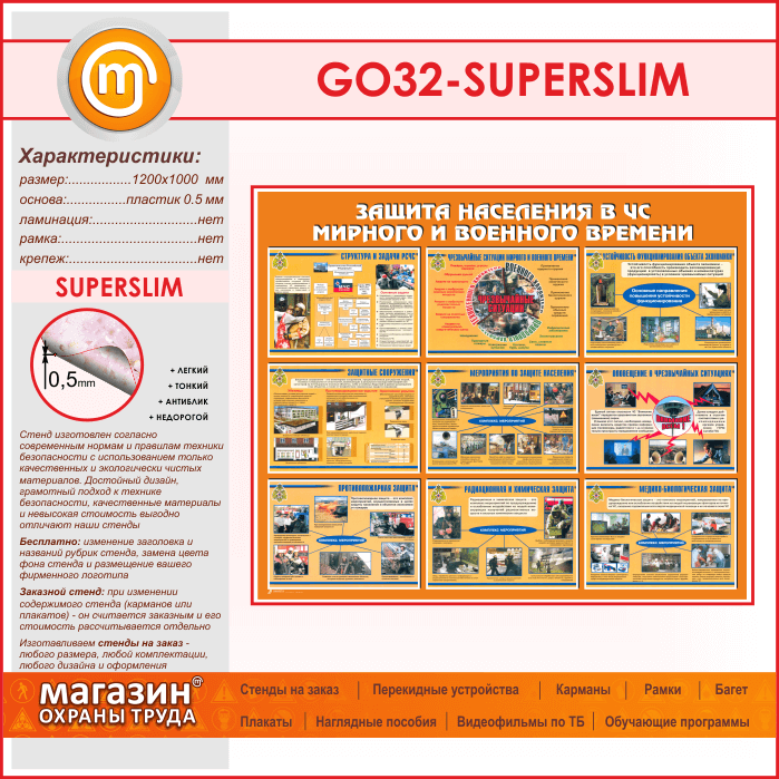 Стенд «Защита населения в ЧС мирного и военного времени» (GO-32-SUPERSLIM) в Пушкино купить