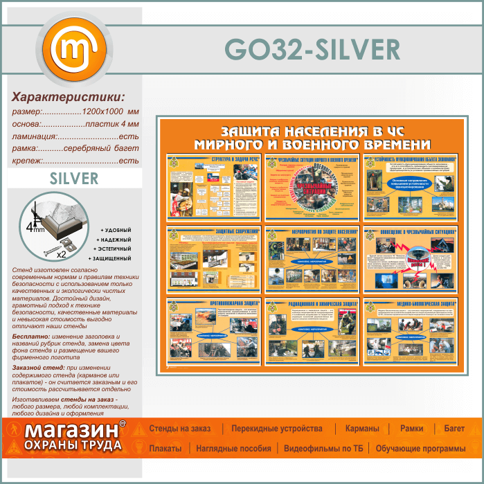 Стенд «Защита населения в ЧС мирного и военного времени» (GO-32-SILVER) в Пушкино купить