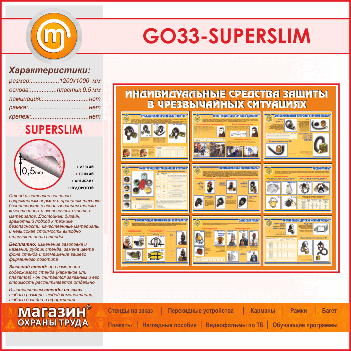 Стенд «Индивидуальные средства защиты в чрезвычайных ситуациях» (GO-33-SUPERSLIM) в Пушкино купить