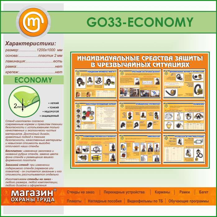 Стенд «Индивидуальные средства защиты в чрезвычайных ситуациях» (GO-33-ECONOMY) в Пушкино купить