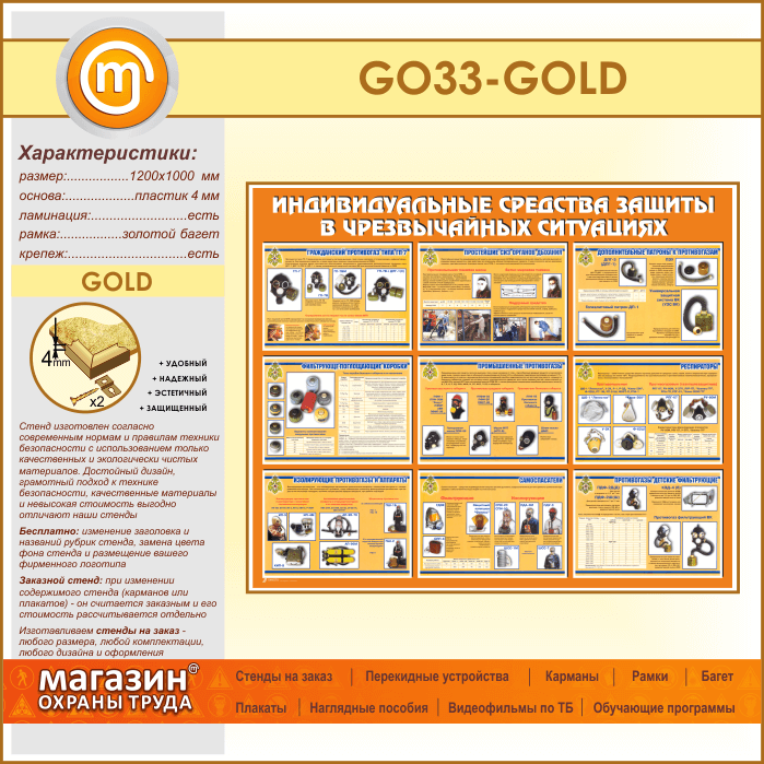 Стенд «Индивидуальные средства защиты в чрезвычайных ситуациях» (GO-33-GOLD) в Пушкино купить