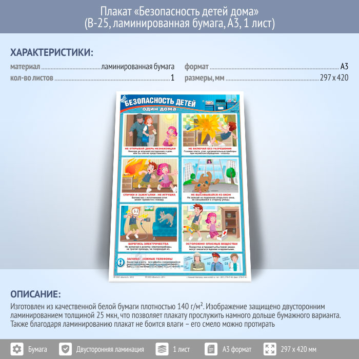 Плакат «Безопасность детей дома» (В-25, ламинированная бумага, А3, 1 лист) в Пушкино купить