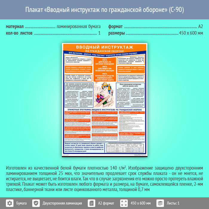 Плакат «Вводный инструктаж по гражданской обороне» (С-90, ламинированная бумага, А2, 1 лист) в Пушкино купить