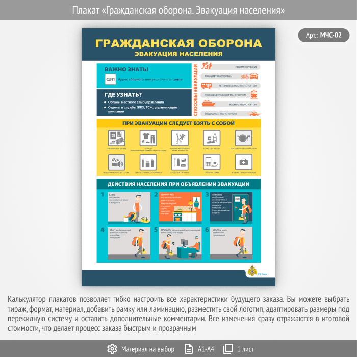 Плакат «Гражданская оборона. Эвакуация населения» (МЧС-02, 1 лист) в Пушкино купить