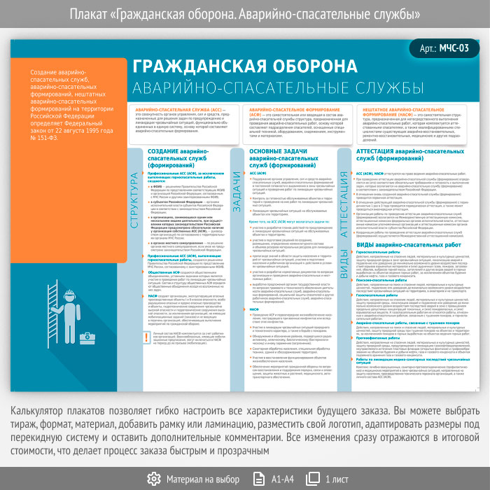Плакат «Гражданская оборона. Аварийно-спасательные службы» (МЧС-03, 1 лист) в Пушкино купить