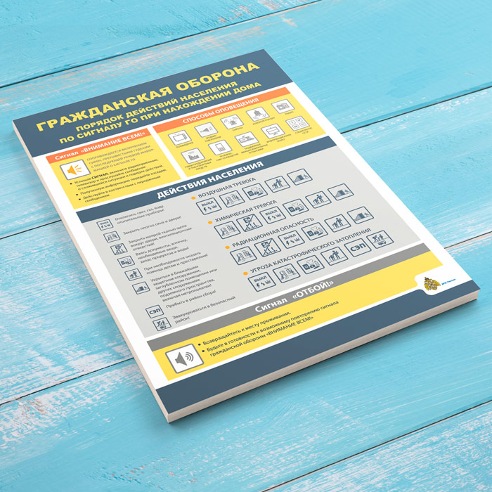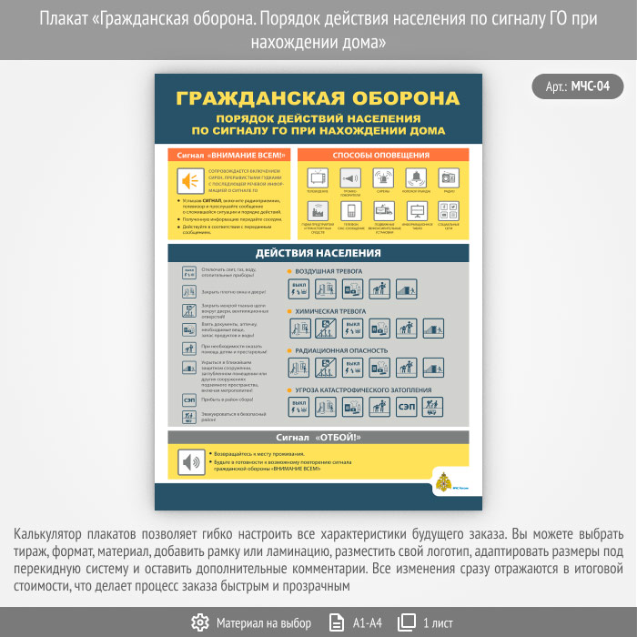 Плакат «Гражданская оборона. Порядок действия населения по сигналу ГО при нахождении дома» (МЧС-04, 1 лист) в Пушкино купить