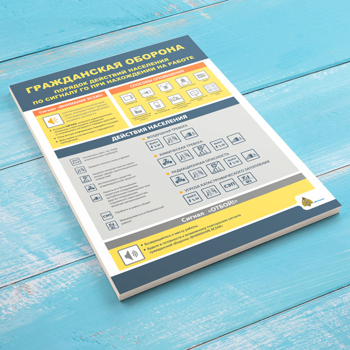 Плакат «Гражданская оборона. Порядок действия населения по сигналу ГО при нахождении на работе» (МЧС-09, 1 лист) в Пушкино купить