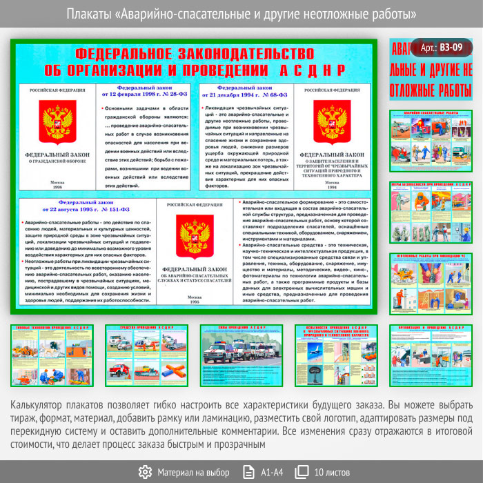 Плакаты «Аварийно-спасательные и другие неотложные работы» (ВЗ-09, 9 листов) в Пушкино купить
