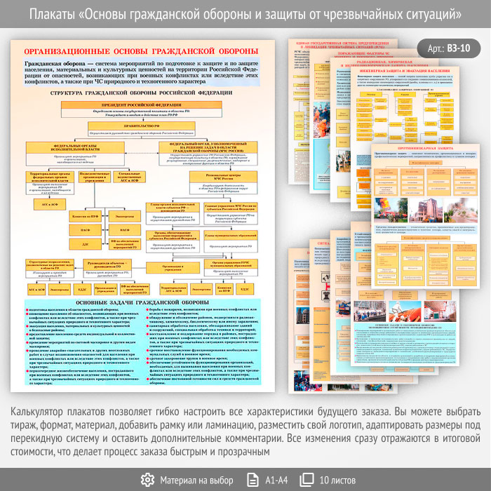 Плакаты «Основы гражданской обороны и защиты от чрезвычайных ситуаций» (ВЗ-10, 10 листов) в Пушкино купить