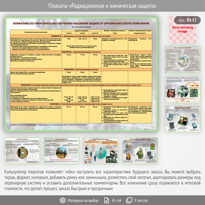 Плакаты «Радиационная и химическая защита» (ВЗ-13, 9 листов) в Пушкино купить