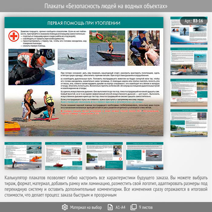 Плакаты «Безопасность людей на водных объектах» (ВЗ-16, 9 листов) в Пушкино купить