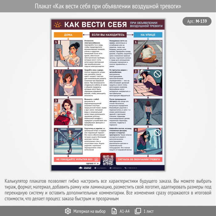 Плакат «Как вести себя при объявлении воздушной тревоги» с QR (М-139, 1 лист) в Пушкино купить