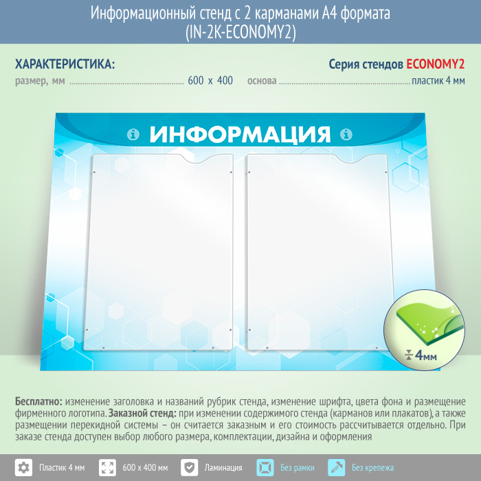 Информационный стенд с 2 карманами А4 формата (IN-2K-ECONOMY2) в Пушкино купить