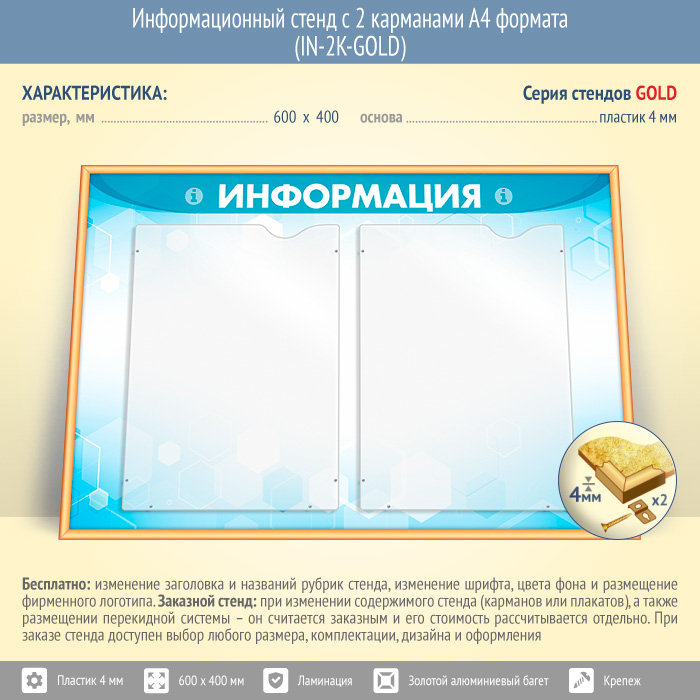 Информационный стенд с 2 карманами А4 формата (IN-2K-GOLD) в Пушкино купить