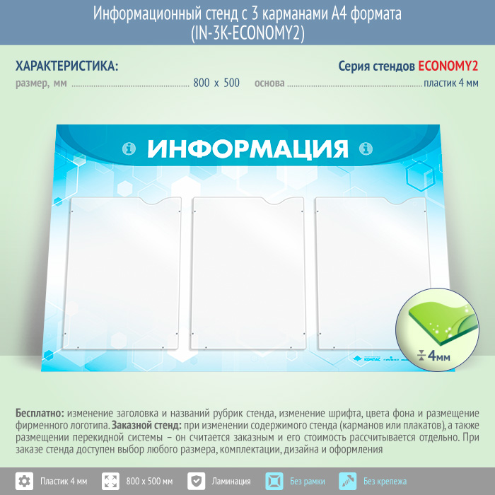 Информационный стенд с 3 карманами А4 формата (IN-3K-ECONOMY2) в Пушкино купить