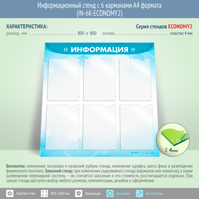 Информационный стенд с 6 карманами А4 формата (IN-6K-ECONOMY2) в Пушкино купить