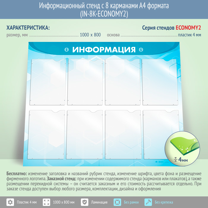 Информационный стенд с 8 карманами А4 формата (IN-8K-ECONOMY2) в Пушкино купить