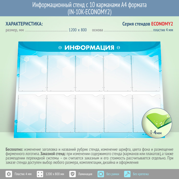 Информационный стенд с 10 карманами А4 формата (IN-10K-ECONOMY2) в Пушкино купить