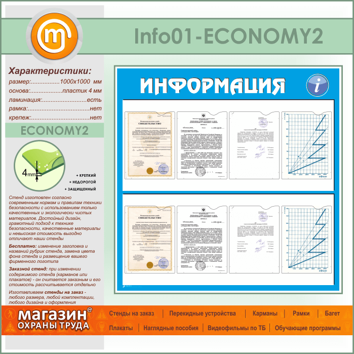 Стенд «Информация» с 8 карманами А4 формата (IN-01-ECONOMY2) в Пушкино купить