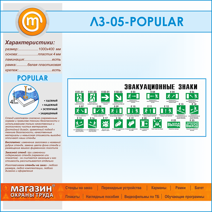 Стенд «Эвакуационные знаки» (LZ-05-POPULAR) в Пушкино купить