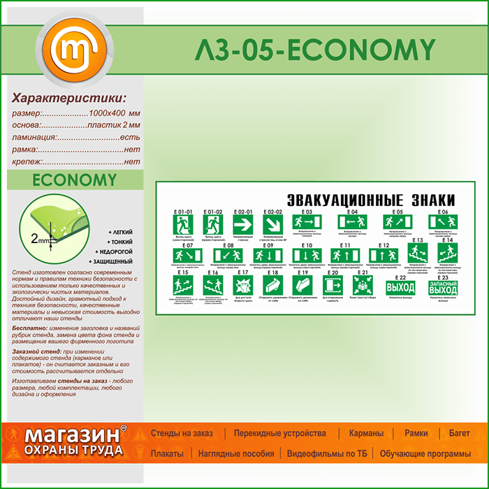 Стенд «Эвакуационные знаки» (LZ-05-ECONOMY) в Пушкино купить