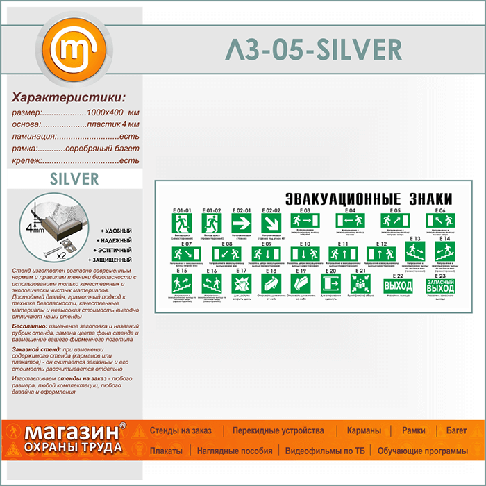 Стенд «Эвакуационные знаки» (LZ-05-SILVER) в Пушкино купить