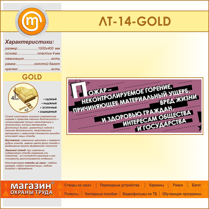 Лозунг «Пожар - неконтроллируемое горение...» (LT-14-GOLD) в Пушкино купить