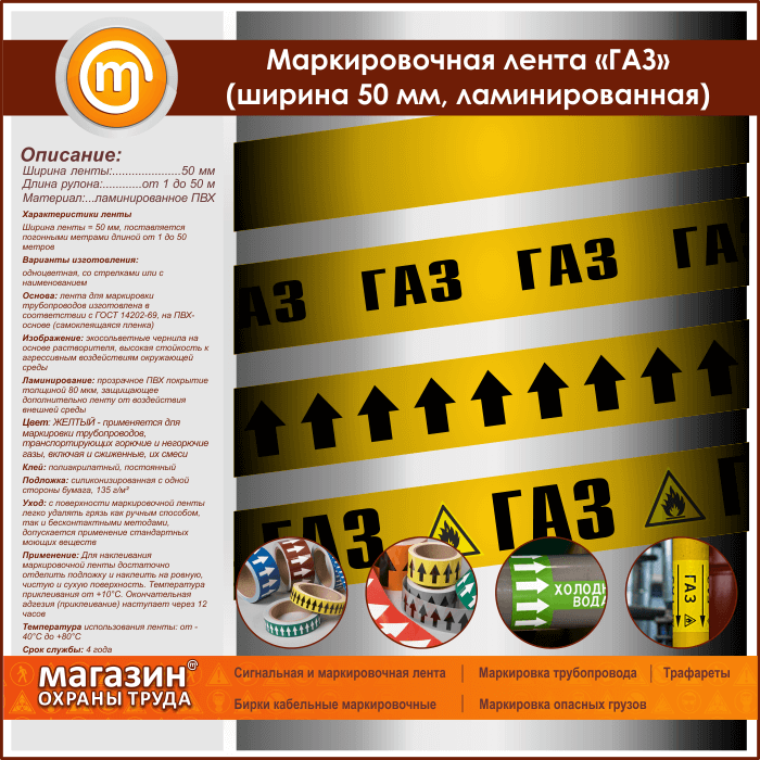 Маркировочная лента «ГАЗ» (ширина 50 мм, самоклеящаяся плёнка с ламинированием) в Пушкино купить