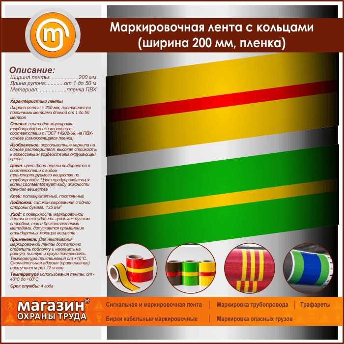 Маркировочная лента с кольцами (ширина 200 мм, самоклеящаяся плёнка) в Пушкино купить