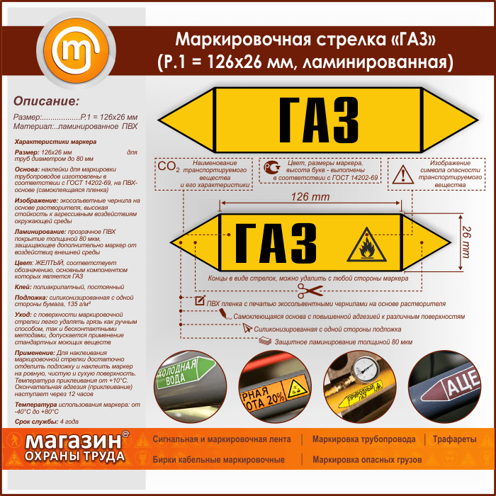 Маркировочная стрелка «ГАЗ» (Р.1 = 126х26 мм, самоклеящаяся плёнка с ламинированием) в Пушкино купить