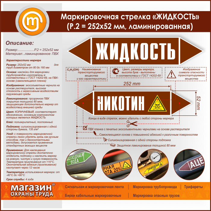 Маркировочная стрелка «ЖИДКОСТЬ» (P.2 = 252х52 мм, самоклеящаяся плёнка с ламинированием) в Пушкино купить